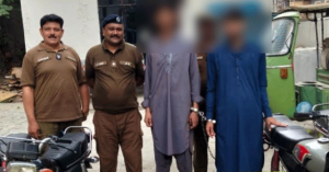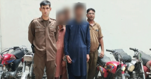 راولپنڈی(کرائم رپورٹر)تھانہ سٹی پولیس کی کاروائی،موٹرسائیکل چوری اور سٹریٹ کرائم کی وارداتوں میں ملوث02رکنی گینگ گرفتار، چوری شدہ 05موٹرسائیکل، مسروقہ رقم07ہزار روپے اور وارداتوں میں استعمال ہونے والا اسلحہ برآمد۔ تفصیلات کے مطابق تھانہ سٹی پولیس نے کاروائی کرتے ہوئے موٹرسائیکل چوری اور سٹریٹ کرائم کی وارداتوں میں ملوث02رکنی گینگ