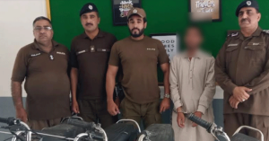 راولپنڈی(کرائم رپورٹر )تھانہ بنی پولیس کی کاروائی، موٹرسائیکل چوری کی وارداتوں میں ملوث ملزم گرفتار، چوری شدہ 04موٹر سائیکل برآمد۔ تفصیلات کے مطابق تھانہ بنی پولیس نے کاروائی کرتے ہوئے موٹرسائیکل چوری کی وارداتوں میں ملوث ملزم عرفان کو گرفتارکرلیا، ملزم سے چوری شدہ 04موٹرسائیکل برآمدہوئے،ایس پی راول فیصل سلیم