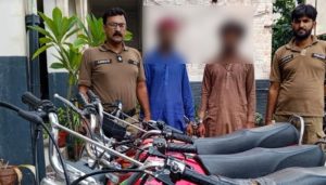 راولپنڈی(کرائم رپورٹر )آرا ے بازار پولیس کی کاروائی، موٹر سائیکل چوری کی وارداتوں میں ملوث گینگ کے 02ملزمان گرفتار،چوری شدہ 04 موٹر سائیکل برآمد۔ تفصیلات کے مطابق آرا ے بازار پولیس نے کاروائی کرتے ہوئے موٹر سائیکل چوری کی وارداتوں میں ملوث گینگ کے 02ملزمان کو گرفتارکر لیا،گرفتار ملزمان میں