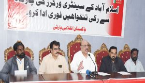 اسلام آباد (روشن پاکستان نیوز) پاکستان انقلابی پارٹی کے چیئرمین مشتاق احمد سلطان نےمطالبہ کیا ہے کہ تمام اداروں سے ٹھیکیداری نظام کا خاتمہ کر کے ملازموں کو مستقل کیا جائےاورتمام مزدوروں کو حکومت کی اعلان کردہ کم از کم تنخواہ کے مطابق معاوضہ دیا جائے،تمام ملازمین کی روکی گئی