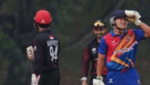 اسلام آباد(روشن پاکستان نیوز)سنگاپور کرکٹ ٹیم نے منگولیا ٹیم کو ٹی ٹوئنٹی انٹرنیشنل میچ میں 10 رنز پر آل آؤٹ کرکے نیا ریکارڈ بنا لیا۔ آئی سی سی کے زیرِ انتظام ٹی ٹوئنٹی ورلڈکپ ایشیا کوالیفائر کے گروپ اے کا میچ آج ملیشیا کے شہر بانگی میں کھیلا گیا۔ منگولیا