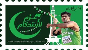 اسلام آباد(روشن پاکستان نیوز) وزیراعظم شہباز شریف کی خصوصی ہدایت پر ملک کے 77 ویں یوم آزادی کے موقع پر ”عزم استحکام“ کے عنوان سے خصوصی ڈاک ٹکٹ جاری کر دیا گیا۔ ڈاک ٹکٹ پر پاکستان کے جیولین تھرور ارشد ندیم کی تصویر لگا کر انہیں خراج تحسین پیش کیا