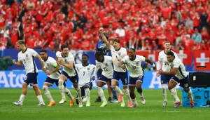 برسلز(روشن پاکستان نیوز)یورو کپ کے کوارٹر فائنل میں انگلینڈ نے سوئٹزرلینڈ کو شکست دیکر سیمی فائنل کے لیے کوالیفائی کرلیا۔ ڈسلڈرف میں کھیلے گئے کوارٹر فائنل میں انگلینڈ اور سوئٹزرلینڈ کی ٹیمیں پہلے ہاف میں کوئی گول نہ کرسکیں۔ میچ کے 75ویں منٹ میں سوئٹزرلینڈ کی جانب سے بریل ایمبولو