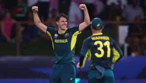 نیویارک(روشن پاکستان نیوز)افغانستان کے خلاف بالنگ کے دوران آسٹریلوی فاسٹ بالر پیٹ کمنز نے اپنی دوسری ہیٹ ٹرک مکمل کرلی۔ پیٹ کمنز نے 18ویں اوور کی آخری بال پر کپتان راشد خان جبکہ 20 ویں اوور کی پہلی اور دوسری بال پر کریم جنت اور گلبیدین نائب کو آؤٹ کرکے اپنی