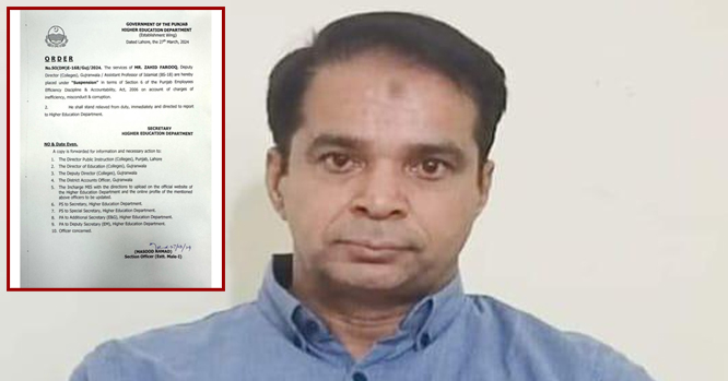 ڈپٹی ڈائریکٹر کالجز گوجرانوالہ زاہد فاروق کرپشن الزامات پر برطرف