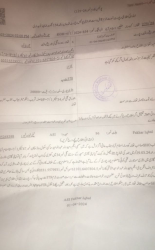 شہری انجم وحید نے پولیس کو درخواست دی کہ وہ سیکٹر ایف سیون ون سکول روڈ پرواقع مسجد میں نمازجمعہ پڑھنے گیا اورمسجدکے سامنے گاڑی پارک کی۔