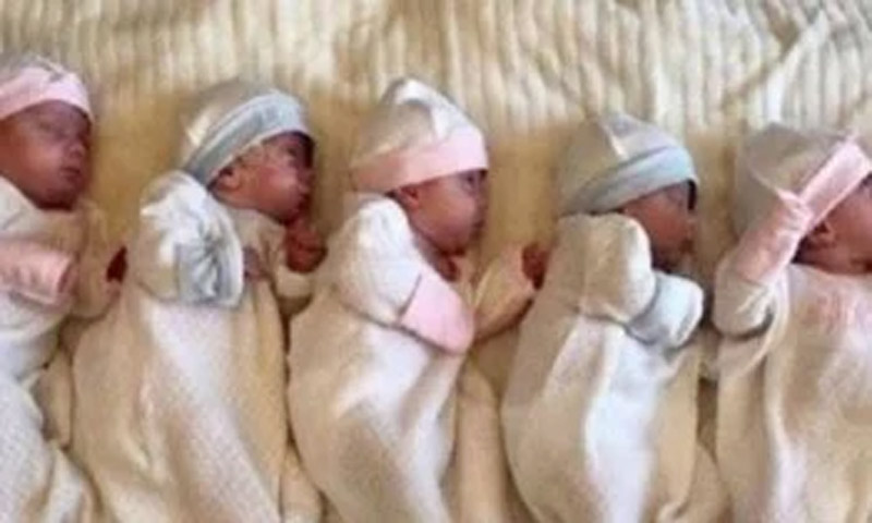 اسپتال ذرائع کے مطابق یہ بچے قبل ازوقت پیدا ہوئے تھے اورانہیں فوری طور پر انتہائی نگہداشت کے وارڈ میں منتقل کر دیا گیا تھا، پیدا ہونے والے جڑواں بچوں میں ایک بیٹا اور چار بیٹیاں شامل تھیں۔
