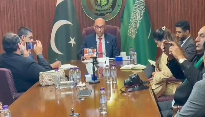 سفارت خانہ پاکستان ریاض میں صحافیوں کو بریفنگ دیتے ہوئے احمد فاروق نے کہا کہ سعودی عرب اور پاکستان اسلامی دنیا کے اہم ممالک ہیں جو دفاعی امور سمیت دیگر شعبوں میں بہتر مستقبل کے لیے ایک دوسرے کے ساتھ تعاون کو فروغ دے رہے ہیں۔ انہوں نے کہا کہ وزیراعظم شہباز شریف کے حالیہ دورہ سعودی عرب کے دوران سرمایہ کاری اور تجارتی معاہدے طے پائے تھے جن میں سے متعدد تکمیل کے مراحل میں ہیں اور ان کے مثبت اثرات پاکستانی معیشت پر ظاہر ہو رہے ہیں۔