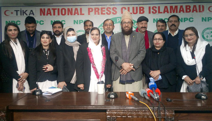اسلام آباد(روشن پاکستان نیوز) آزاد جموں و کشمیر مسلم کانفرنس خواتین ونگ کی سابق صدرافشاں سعید ایڈووکیٹ پاکستان مسلم لیگ (ن) میں شامل ،حلقے کے عوام کیلئے خدمت کا سلسلہ جاری رکھنے کے عزم کا اعادہ، وفاقی وزیر مذہبی امورسردار محمد یوسف اور آزاد کشمیر کی لیگی قیادت کا افشاں سعید کی پارٹی میں شمولیت پر خیر مقدم،تفصیلات کے مطابق آزاد جموں و کشمیر مسلم کانفرنس خواتین ونگ کی سابق صدرافشاں سعید ایڈووکیٹ نے وفاقی وزیر مذہبی امور سردار محمد یوسف، سید شوکت شاہ، چوہدری محسن عزیز راضہ سیعد گیالانی، چوہدری حسن میر، خورشید عالم،چوہدری اعجاز کھٹانہ و دیگر کے ہمراہ نیشنل پریس کلب اسلام آباد میں پریس کانفرنس کرتے ہوئے پاکستان مسلم لیگ ن میں شمولیت کا اعلان کرتے ہوئے کہا کہ پاکستان مسلم لیگ (ن)میں شمولیت کے بعد اپنا سیاسی سفر نئے سرے سے شروع کر رہی ہوں، مسلم کانفرنس میں بہت عزت ملی جسکا سہرہ سردار عتیق احمد خان کو جاتا ہے،حلقے کے عوام بالخصوص خواتین کے مسائل کے حل کیلئے اپنا کردار ادا کرتی رہونگی،اس موقع پر وفاقی وزیر مذہبی امور سردار محمد یوسف نے افشاں سعید ایڈووکیٹ کی پاکستان مسلم لیگ میں شمولیت پر انہیں خوش آمدید کہتے ہوئے انہیں پارٹی کیلئے باعث فخر قرار دیا اور کہا کہ انکی پارٹی میں شمولیت سے انکی قدرو منزلت مین مزید اضافہ اورپارٹی کو علاقے میں مزید تقویت ملے گی،ان جیسے پڑھے لکھے اور وژن رکھنے والے کارکن پارٹی کا سرمایہ ہیں،ان کا مزید کہنا تھا کہ پاکستان مسلم لیگ (ن)نے ہمیشہ ملک کی تعمیر و ترقی میں اہم کردار ادا کیا ہے، ن لیگ نے اپنی سیاست کی پاکستان کی ترقی و خوشحالی کیلئے قربانی دی ہے،پاکستان کی طرح آزاد کشمیر اور گلگت بلتستان میں بھی صحت کارڈ، لیپ ٹاپ دیئے جارہے ہیں، وزیر اعظم میاں محمد شہباز شریف پسماندہ علاقوں کی ترقی کیلئے ترجیح دے رہے ہیں۔