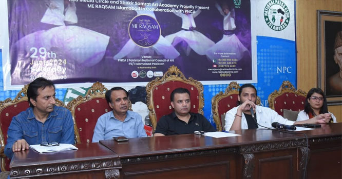 اسلام آباد(سدھیرکیانی) ریڈ میڈیا سرکل اور شاکر سمراٹ آرٹ اکیڈمی کے زیر اہتمام پی این سی اے کے اشتراک سےصوفی ازم پر مبنی میوزیکل ڈرامہ “می رقصم” 29 جون بروز ہفتہ کی شام پاکستان نیشنل کونسل آف دی آرٹس میں پیش کیا جائیگا۔