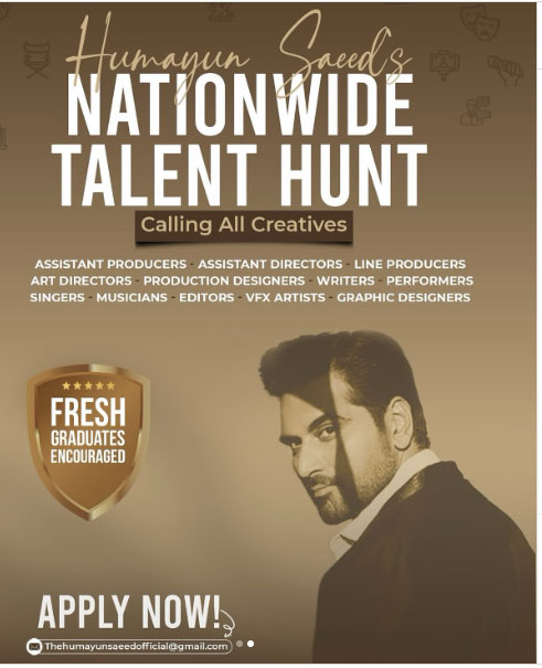 سوشل میڈیا پر جاری پیغام میں ہمایوں سعید نے نوجوانوں کو دعوت دی کہ وہ اس تخلیقی میدان کا حصہ بنیں، چاہے وہ اسکرین پر اداکاری کرنا چاہتے ہوں یا پس پردہ مختلف ذمہ داریاں سنبھالنے کے خواہش مند ہوں۔