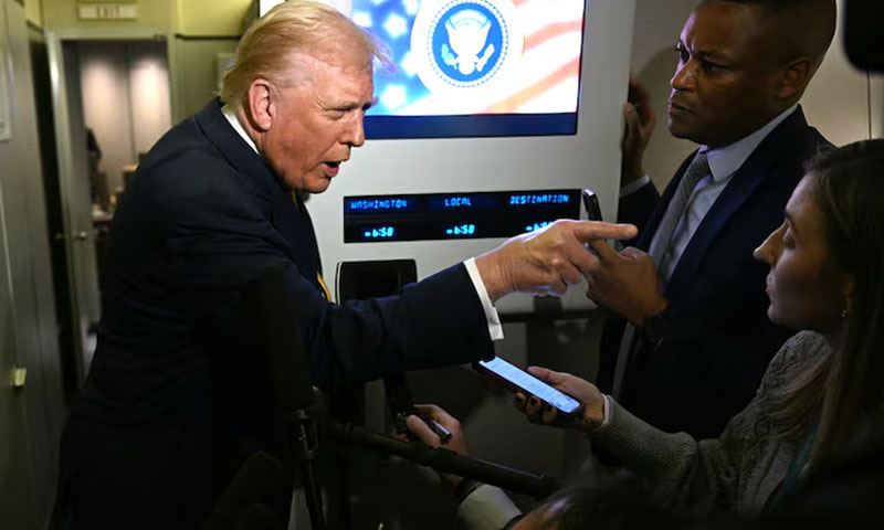 واشنگٹن(روشن پاکستان نیوز) امریکی صدر ڈونلڈ ٹرمپ ایئر فورس ون جہاز پر صحافیوں سے گفتگو کے دوران اشتعال میں آ گئے جب ایک صحافی نے جیفری ایپسٹین کی نئی سامنے آنے والی ای میلز کے بارے میں پوچھا۔